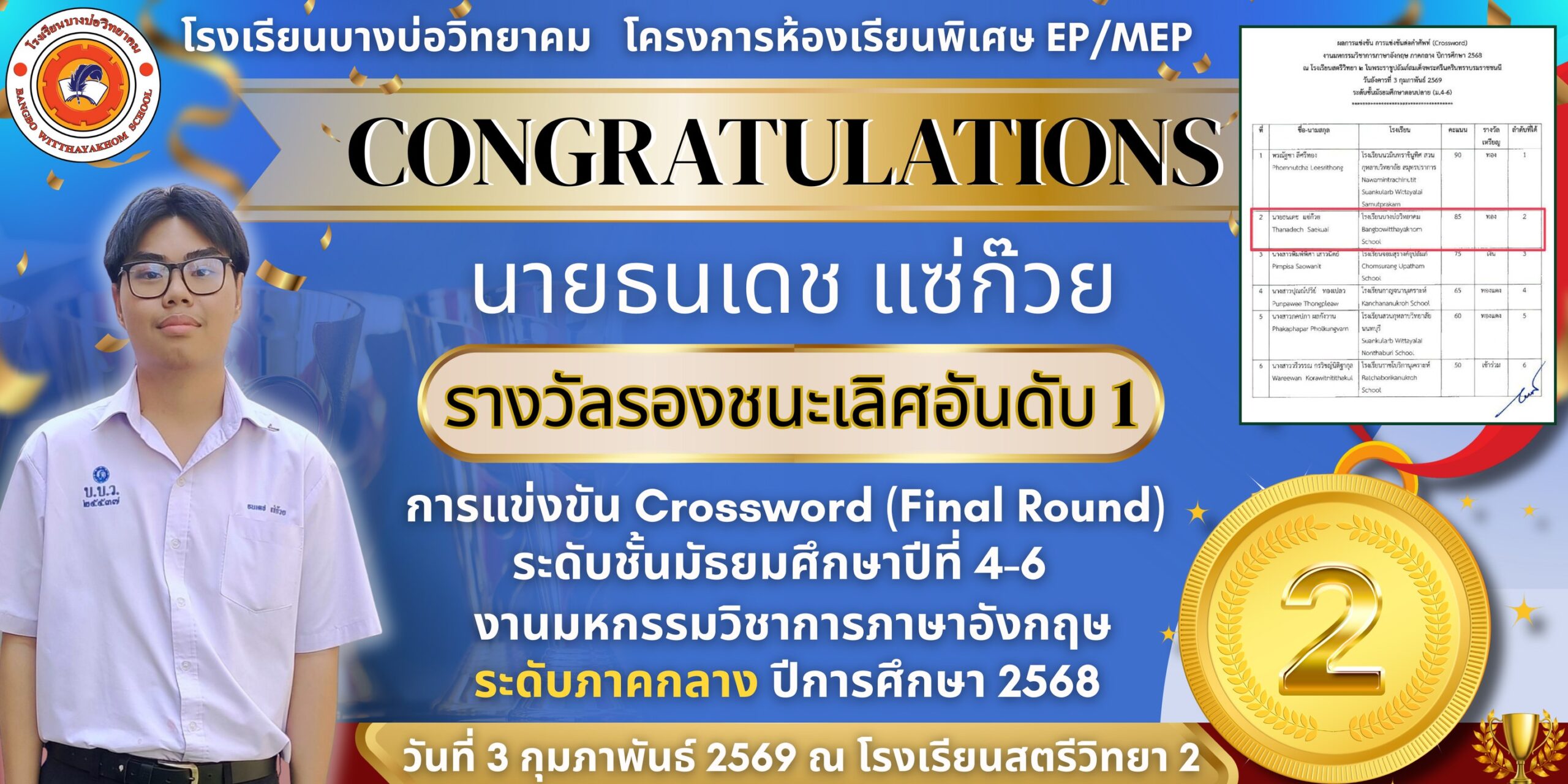 🗞 ข่าวประชาสัมพันธ์ ประกาศ การรับสมัครนักเรียนชั้นมัธยมศึกษาปีที่ 1 และ ชั้นมัธยมศึกษาปีที่ 4 ประเภทห้องเรียนพิเศษ ปีการ…ประกาศ การรับสมัครนักเรียนชั้นมัธยมศึกษาปีที่ 3 โรงเรียนบางบ่อวิทยาคม เข้าศึกษาต่อระดับชั้นมัธยมศึกษ…กิจกรรม บ.บ.ว.นิทรรศ’68ประกาศโรงเรียนบางบ่อวิทยาคม เรื่อง การเก็บเงินบำรุงการศึกษาของสถานศึกษา ภาคเรียนที่ 1 ปีการศึกษา 256…ประกาศ รายชื่อนักเรียนที่ผ่านการสอบคัดเลือกเข้าศึกษาต่อระดับชั้นมัธยมศึกษาปีที่ 4 ประเภทห้องเรียนโคร…ประกาศ เรื่อง รายชื่อนักเรียนที่ผ่านการสอบคัดเลือกเข้าศึกษาต่อระดับชั้นมัธยมศึกษาปีที่ 4 ประเภทห้องเ… 1…123…12 📜 จดหมายข่าว จดหมายข่าวทั้งหมด 🏆 รอบรั้ว บบว. 📢 ข่าวประกาศ ประกาศจัดซื้อจัดจ้างประกาศรับสมัครงาน ประกาศ การจัดซื้อหนังสือ ประจำปีการศึกษา 2568ประกาศ เรื่อง การจัดจ้างทำประกันอุบัติเหตุสำหรับนักเรียน ประจำปีการศึกษา 2568 โดยวิธีคัดเลือกประกาศ รายชื่อผู้ประกอบการร้านค้าจําหน่ายอาหารในสถานศึกษาปีการศึกษา 2567ประกาศ รับสมัครผู้ประกอบการร้านค้าจำหน่ายอาหารภายในสถานศึกษา ปีการศึกษา 2567ประกาศ รายชื่อผู้ได้รับคัดเลือกผู้ประกอบการร้านค้าจำหน่ายอาหาร ปีการศึกษา 2567ประกาศ โรงเรียนบางบ่อวิทยาคม เรื่อง ประกาศผู้ชนะการเสนอราคาซื้อน้ำดื่ม (บรรจุขวด) ประจำปีการศึกษา 25…ประกาศ เรื่อง การจัดซื้อน้ำดื่ม (บรรจุขวด) โดยวิธีคัดเลือกประกาศ รับสมัครผู้ประกอบการร้านค้าโรงเรียนบางบ่อวิทยาคม ประจำปีการศึกษา 2567ประกาศ การจัดซื้อหนังสือ ประจำปีการศึกษา 2567 Previous Next ประกาศ เรื่อง การรับสมัครลูกจ้างชั่วคราว ตำแหน่ง นักการภารโรงประกาศ เรื่อง รายชื่อผู้ได้รับการคัดเลือกเป็นลูกจ้างชั่วคราว ตำแหน่ง ยามรักษาการณ์ประกาศ รายชื่อผู้ได้รับการคัดเลือกเป็นลูกจ้างชั่วคราว ตำแหน่ง นักการภารโรงประกาศ เรื่อง การรับสมัครยามรักษาการณ์ประกาศ เรื่อง การรับสมัครลูกจ้างชั่วคราว ตำแหน่ง นักการภารโรงประกาศ เรื่อง การรับสมัครลูกจ้างชั่วคราว ตำแหน่ง คนงานทั่วไปประกาศผลการสอบคัดเลือกเจ้าหน้าที่ธุรการ โครงการห้องเรียนพิเศษ English Program/Mini English Programประกาศ รายชื่อผู้สมัครสอบคัดเลือกเจ้าหน้าที่ธุรการ โครงการห้องเรียนพิเศษ English Program/Mini Englis…ประกาศ รับสมัครเจ้าหน้าที่ธุรการ โครงการห้องเรียนพิเศษ English Program/Mini English Program Previous Next 📆 ปฏิทินกิจกรรม 📸 ภาพกิจกรรม ภาพกิจกรรมโครงการต้านภัยยาเสพติด TERO MU…ประชาสัมพันธ์ภาพกิจกรรมทอดกฐินสามัคคี 2566 ณ วัดสุคัน…ภาพกิจกรรมกิจกรรมวันแม่แห่งชาติภาพกิจกรรมอบรมการปฐมพยาบาลและการช่วยฟื้น…ภาพกิจกร