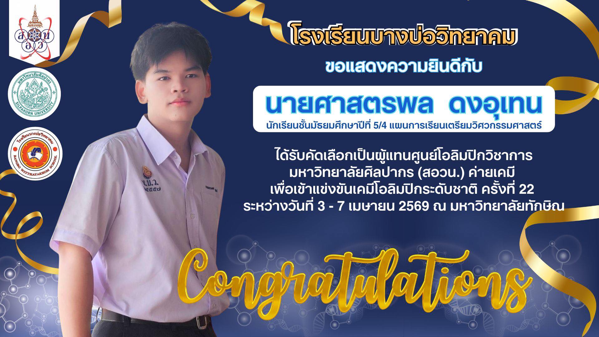 🗞 ข่าวประชาสัมพันธ์ ประกาศรายชื่อนักเรียนที่ผ่านการสอบคัดเลือกเข้าศึกษาต่อระดับชั้นมัธยมศึกษาปีที่ 1 ประเภทห้องเรียนปกติ…ประกาศรายชื่อนักเรียนลำดับสำรองในการสอบคัดเลือก นักเรียนระดับชั้นมัธยมศึกษาปีที่ 1 ประเภทห้องเรียนพิ…ประกาศ รายชื่อผู้มีสิทธิ์สอบคัดเลือกเข้าศึกษาต่อระดับชั้นมัธยมศึกษาปีที่ 1 ประเภทห้องเรียนปกติ ประจำ…ประกาศรายชื่อนักเรียนที่ผ่านการสอบคัดเลือกเข้าศึกษาต่อระดับชั้นมัธยมศึกษาปีที่ 4 ประเภทความสามารถพิเ…ประกาศรายชื่อนักเรียนย้ายเข้าเรียนระหว่างปี ระดับชั้นมัธยมศึกษาปีที่ 2, 3, และ 5 ประเภทห้องเรียนปกติ…ประกาศ รายชื่อนักเรียนที่ผ่านการสอบคัดเลือกเข้าศึกษาต่อระดับชั้นมัธยมศึกษาปีที่ 1 ประเภทความสามารถพิ… 1…123…15 📜 จดหมายข่าว จดหมายข่าวทั้งหมด 🏆 รอบรั้ว บบว. 📢 ข่าวประกาศ ประกาศจัดซื้อจัดจ้างประกาศรับสมัครงาน ประกาศ เรื่อง การจัดจ้างทำประกันอุบัติเหตุสำหรับนักเรียน ประจำปีการศึกษา 2569 โดยวิธีคัดเลือกประกาศ การจัดซื้อหนังสือ ประจำปีการศึกษา 2568ประกาศ เรื่อง การจัดจ้างทำประกันอุบัติเหตุสำหรับนักเรียน ประจำปีการศึกษา 2568 โดยวิธีคัดเลือกประกาศ รายชื่อผู้ประกอบการร้านค้าจําหน่ายอาหารในสถานศึกษาปีการศึกษา 2567ประกาศ รับสมัครผู้ประกอบการร้านค้าจำหน่ายอาหารภายในสถานศึกษา ปีการศึกษา 2567ประกาศ รายชื่อผู้ได้รับคัดเลือกผู้ประกอบการร้านค้าจำหน่ายอาหาร ปีการศึกษา 2567ประกาศ โรงเรียนบางบ่อวิทยาคม เรื่อง ประกาศผู้ชนะการเสนอราคาซื้อน้ำดื่ม (บรรจุขวด) ประจำปีการศึกษา 25…ประกาศ เรื่อง การจัดซื้อน้ำดื่ม (บรรจุขวด) โดยวิธีคัดเลือกประกาศ รับสมัครผู้ประกอบการร้านค้าโรงเรียนบางบ่อวิทยาคม ประจำปีการศึกษา 2567 Previous Next ประกาศ เรื่อง การรับสมัครลูกจ้างชั่วคราว ตำแหน่ง นักการภารโรงประกาศ เรื่อง รายชื่อผู้ได้รับการคัดเลือกเป็นลูกจ้างชั่วคราว ตำแหน่ง ยามรักษาการณ์ประกาศ รายชื่อผู้ได้รับการคัดเลือกเป็นลูกจ้างชั่วคราว ตำแหน่ง นักการภารโรงประกาศ เรื่อง การรับสมัครยามรักษาการณ์ประกาศ เรื่อง การรับสมัครลูกจ้างชั่วคราว ตำแหน่ง นักการภารโรงประกาศ เรื่อง การรับสมัครลูกจ้างชั่วคราว ตำแหน่ง คนงานทั่วไปประกาศผลการสอบคัดเลือกเจ้าหน้าที่ธุรการ โครงการห้องเรียนพิเศษ English Program/Mini English Programประกาศ รายชื่อผู้สมัครสอบคัดเลือกเจ้าหน้าที่ธุรการ โครงการห้องเรียนพิเศษ English Program/Mini Englis…ประกาศ รับสมัครเจ้าหน้าที่ธุรการ โครงการห้องเรียนพิเศษ English Program/Mini English Program Previous Next 📆 ปฏิทินกิจกรรม 📸 ภาพกิจกรรม ภาพกิจกรรมโครงการต้านภัยยาเสพติด TERO MU