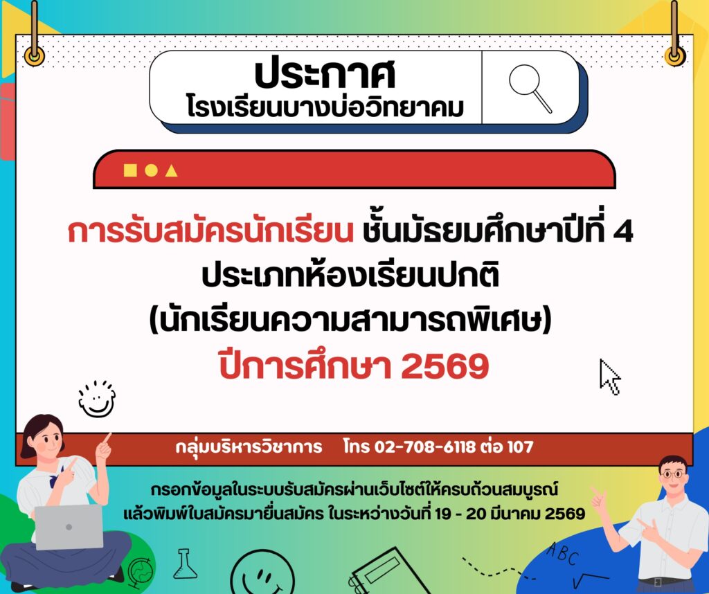 ประกาศ เรื่อง การรับสมัครนักเรียนชั้นมัธยมศึกษาปีที่ 4