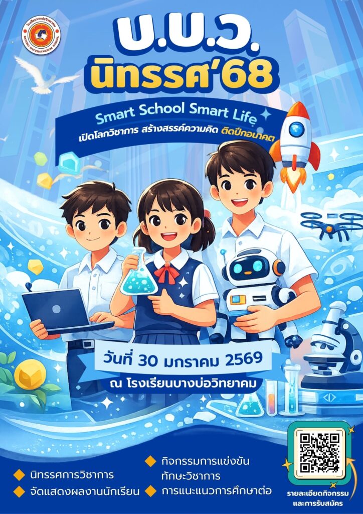 ขอเชิญร่วมงาน “บ.บ.ว. นิทรรศ 68” ภายใต้แนวคิด “Smart School Smart Life : เปิดโลกวิชาการ สร้างสรรค์ความคิด ติดปีกอนาคต”