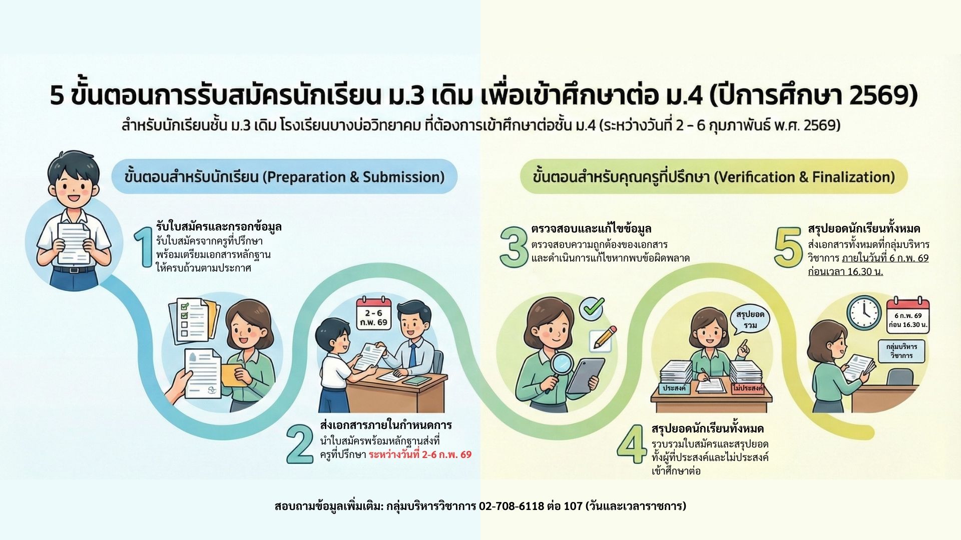 สอบถามข้อมูลเพิ่มเติม: 📞 กลุ่มบริหารวิชาการ 02-708-6118 ต่อ 107 (วันและเวลาราชการ)