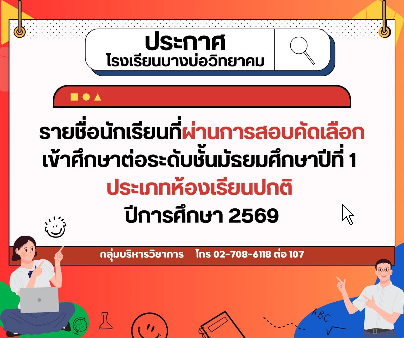 รายชื่อผู้ผ่านการสอบคัดเลือกเข้าศึกษาต่อระดับชั้นมัธยมศึกษาปีที่ 1