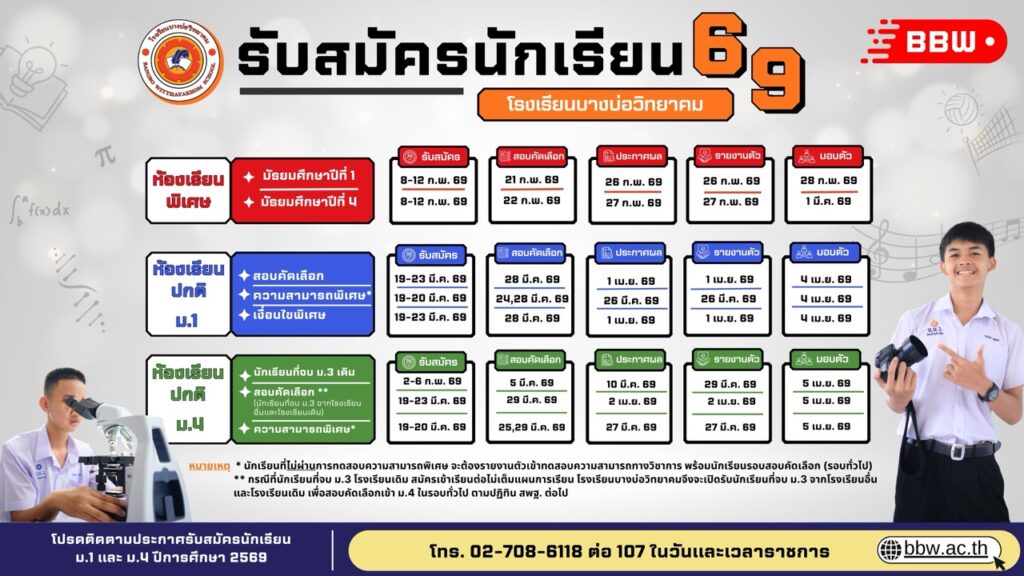 🗞 ข่าวประชาสัมพันธ์ กิจกรรม บ.บ.ว.นิทรรศ’68ประกาศโรงเรียนบางบ่อวิทยาคม เรื่อง การเก็บเงินบำรุงการศึกษาของสถานศึกษา ภาคเรียนที่ 1 ปีการศึกษา 256…ประกาศ รายชื่อนักเรียนที่ผ่านการสอบคัดเลือกเข้าศึกษาต่อระดับชั้นมัธยมศึกษาปีที่ 4 ประเภทห้องเรียนโคร…ประกาศ เรื่อง รายชื่อนักเรียนที่ผ่านการสอบคัดเลือกเข้าศึกษาต่อระดับชั้นมัธยมศึกษาปีที่ 4 ประเภทห้องเ…ประกาศ รายชื่อนักเรียนที่ผ่านการสอบคัดเลือกเข้าศึกษาต่อระดับชั้นมัธยมศึกษาปีที่ 1 ประเภทห้องเรียนโคร…ประกาศ รายชื่อนักเรียนผ่านการสอบคัดเลือกเข้าศึกษาต่อระดับชั้นมัธยมศึกษาปีที่ 1 ประเภทห้องเรียนปกติ ป… 1…123…12 📜 จดหมายข่าว จดหมายข่าวทั้งหมด 🏆 รอบรั้ว บบว. 📢 ข่าวประกาศ ประกาศจัดซื้อจัดจ้างประกาศรับสมัครงาน ประกาศ การจัดซื้อหนังสือ ประจำปีการศึกษา 2568ประกาศ เรื่อง การจัดจ้างทำประกันอุบัติเหตุสำหรับนักเรียน ประจำปีการศึกษา 2568 โดยวิธีคัดเลือกประกาศ รายชื่อผู้ประกอบการร้านค้าจําหน่ายอาหารในสถานศึกษาปีการศึกษา 2567ประกาศ รับสมัครผู้ประกอบการร้านค้าจำหน่ายอาหารภายในสถานศึกษา ปีการศึกษา 2567ประกาศ รายชื่อผู้ได้รับคัดเลือกผู้ประกอบการร้านค้าจำหน่ายอาหาร ปีการศึกษา 2567ประกาศ โรงเรียนบางบ่อวิทยาคม เรื่อง ประกาศผู้ชนะการเสนอราคาซื้อน้ำดื่ม (บรรจุขวด) ประจำปีการศึกษา 25…ประกาศ เรื่อง การจัดซื้อน้ำดื่ม (บรรจุขวด) โดยวิธีคัดเลือกประกาศ รับสมัครผู้ประกอบการร้านค้าโรงเรียนบางบ่อวิทยาคม ประจำปีการศึกษา 2567ประกาศ การจัดซื้อหนังสือ ประจำปีการศึกษา 2567 Previous Next ประกาศ เรื่อง การรับสมัครลูกจ้างชั่วคราว ตำแหน่ง นักการภารโรงประกาศ เรื่อง รายชื่อผู้ได้รับการคัดเลือกเป็นลูกจ้างชั่วคราว ตำแหน่ง ยามรักษาการณ์ประกาศ รายชื่อผู้ได้รับการคัดเลือกเป็นลูกจ้างชั่วคราว ตำแหน่ง นักการภารโรงประกาศ เรื่อง การรับสมัครยามรักษาการณ์ประกาศ เรื่อง การรับสมัครลูกจ้างชั่วคราว ตำแหน่ง นักการภารโรงประกาศ เรื่อง การรับสมัครลูกจ้างชั่วคราว ตำแหน่ง คนงานทั่วไปประกาศผลการสอบคัดเลือกเจ้าหน้าที่ธุรการ โครงการห้องเรียนพิเศษ English Program/Mini English Programประกาศ รายชื่อผู้สมัครสอบคัดเลือกเจ้าหน้าที่ธุรการ โครงการห้องเรียนพิเศษ English Program/Mini Englis…ประกาศ รับสมัครเจ้าหน้าที่ธุรการ โครงการห้องเรียนพิเศษ English Program/Mini English Program Previous Next 📆 ปฏิทินกิจกรรม 📸 ภาพกิจกรรม ภาพกิจกรรมโครงการต้านภัยยาเสพติด TERO MU…ประชาสัมพันธ์ภาพกิจกรรมทอดกฐินสามัคคี 2566 ณ วัดสุคัน…ภาพกิจกรรมกิจกรรมวันแม่แห่งชาติภาพกิจกรรมอบรมการปฐมพยาบาลและการช่วยฟื้น…ภาพกิ